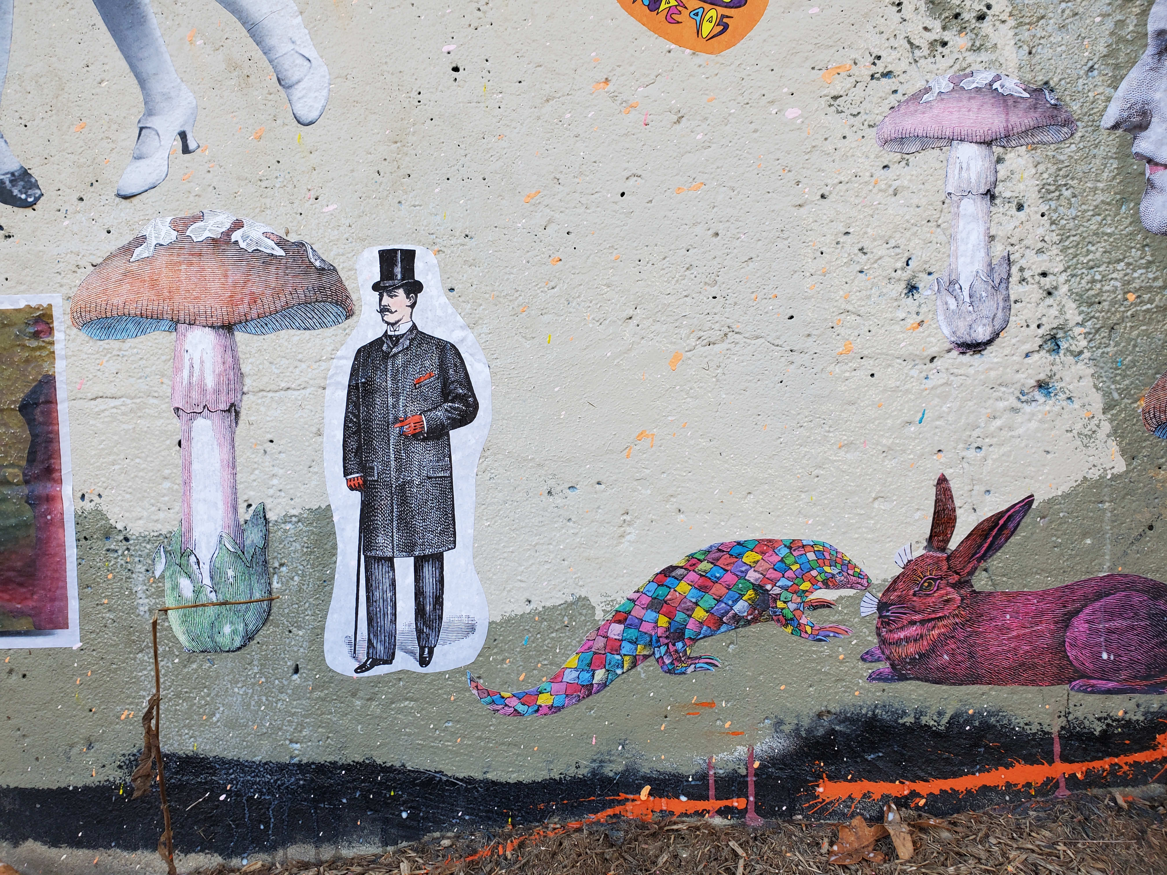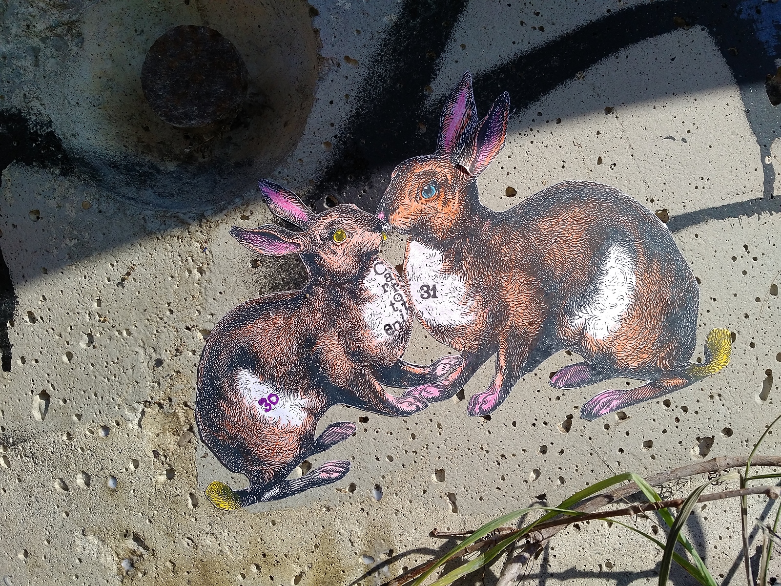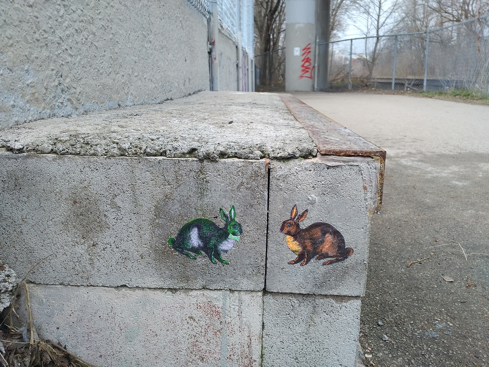 Wheatpastes 2020-2025 | Pencilart | Politics | Nature | Toronto | West Railpath | Hamilton | Guelph Method: Mix 50/50 White Glue/Water/Spray Bottle/Brushes/Cloth 101 Bunny Hop with ET Collabs: MORTY, ET, RF, KP & LSQ